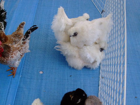 強風だったので、烏骨鶏が団子になってます。