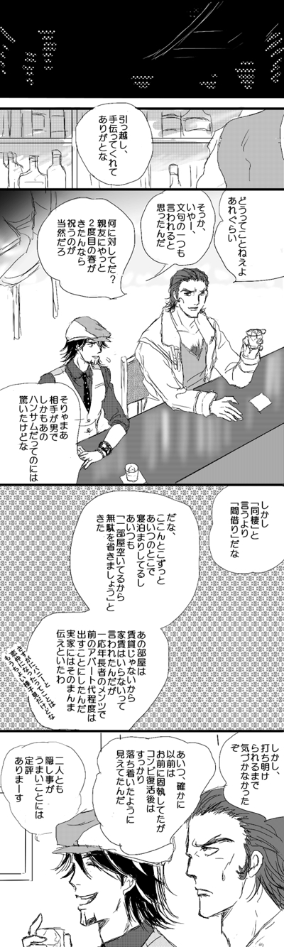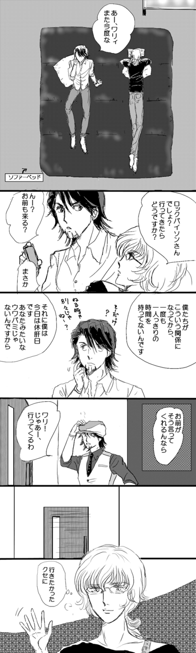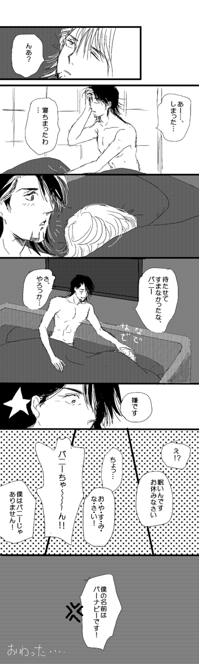 えっと、腐向けですが、前半にはラブシーンはない…というか、いちゃついた後です。