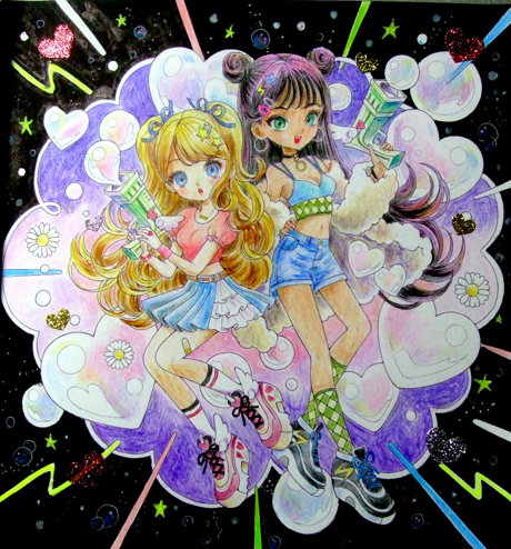 どちらもコピックのサイトからダウンロードした線画使用です。