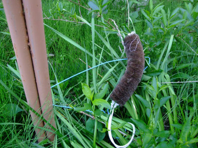 犯人はカラス。巣材にしようとして