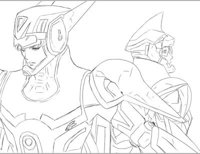 線画、一人じゃ寂しかったので虎徹さんも描いちゃった。