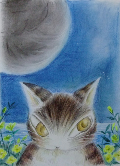 パステルで「猫のダヤンと不思議な国」の塗り絵