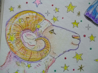 メインはクーピーで塗って、背景のドット等はボールペンです。