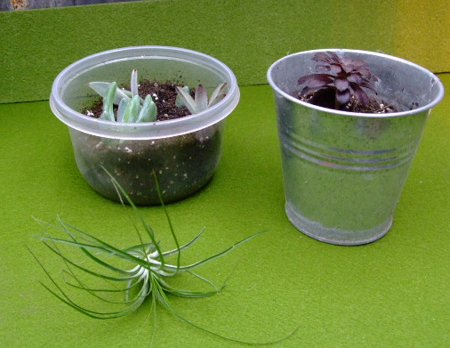 (カット苗が入れてあるのは食品の保存容器だったりして。)