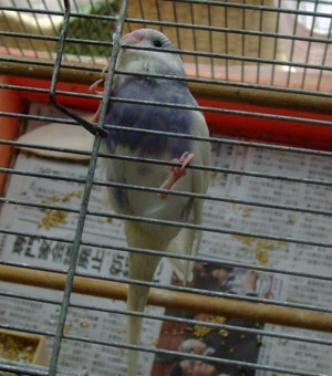 これは数日前のパル。鳥かごの天井にくちばしと足で
