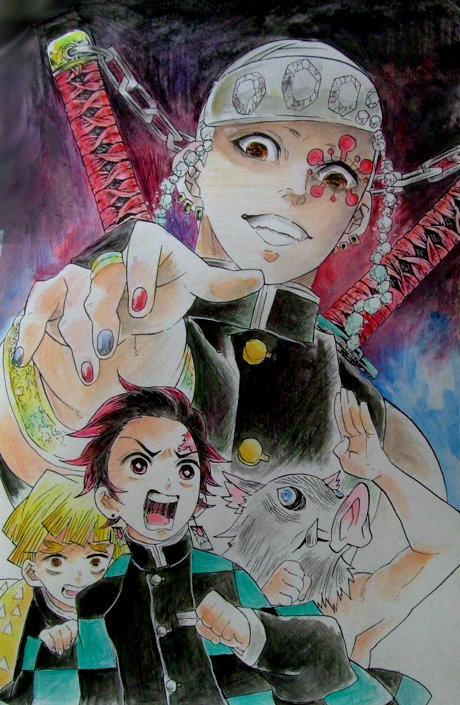 「鬼滅の刃 塗絵帳ー藍ー」より。炭治郎・伊之助・善逸に